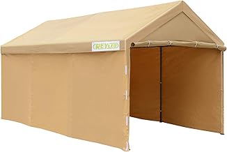 Abba Patio 10 x 20-Feet Carport Replacement Top Canopy Cover for Garage Shelter with Fabric Pole Skirts and Ball Bungees Beige Frame Not Included. Replacement Canopy Roof Cover 10 ft x 20 ft. 10x15x8ft Canopy Carport Tent Garage Shade Outdoor Shelter Motorcycle Tent Cover.