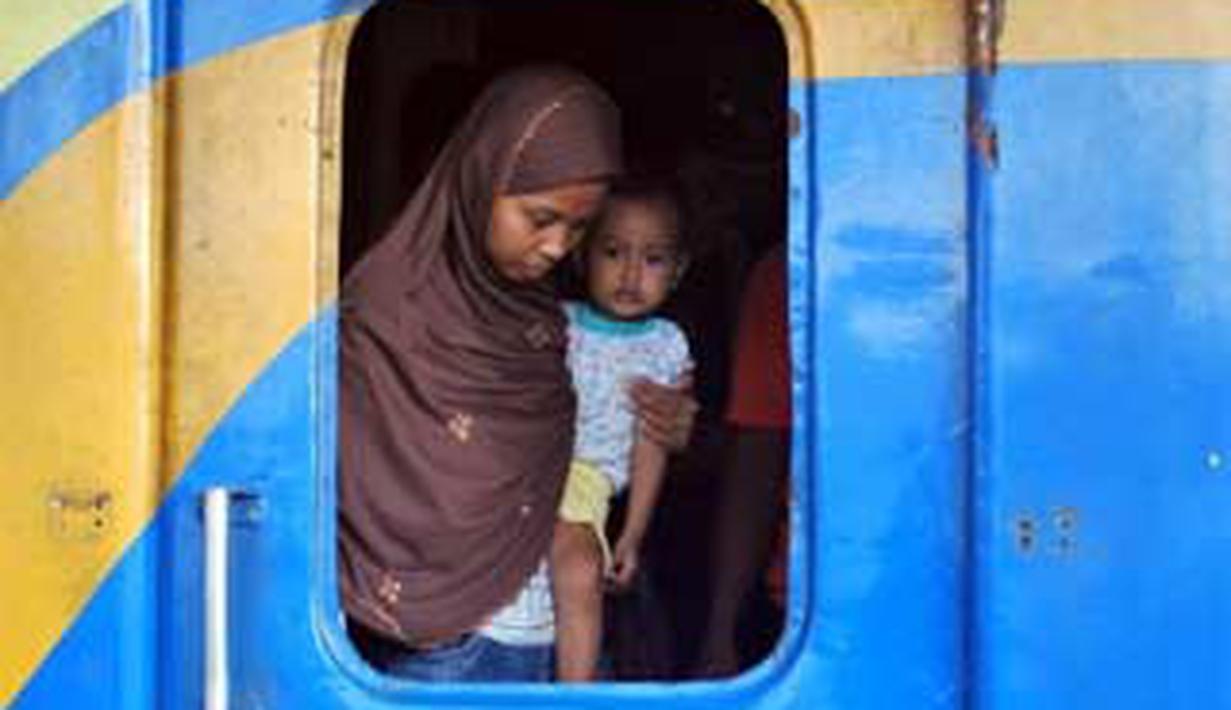 Seorang Bocah Digendong Ibunya Berada Di Bordes Kereta Api Tanpa Kaca Saat Melintas Di Stasiun Ka Madiun Jatim Minggu 11 7 Antara Foto Liputan6 Com